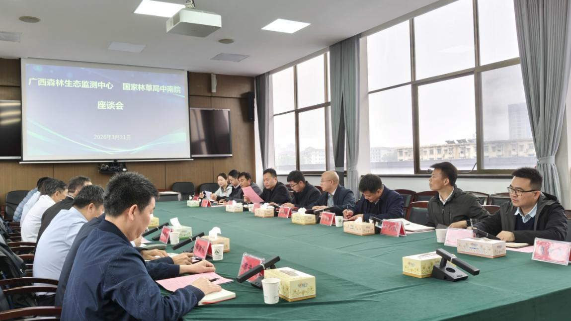 3月31日,广西壮族自治区森林资源与生态环境监测中心(以下简称“广西森林生态监测中心”)主任卢峰一行到中南院开展座谈交流,共商林草湿荒调查监测、生态保护修复等领域合作事宜,助力广西林草事业高质量发展。座谈会由中南院生产技术管理处处长刘扬晶主持,副院长陈振雄、办公室、荒漠化(石漠化)处、大数据中心、产业规划处、湿地处等相关处室负责同志参加会议。