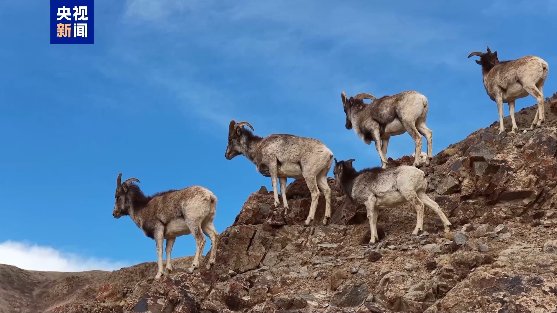 成群盘羊现身青海都兰悠然栖居