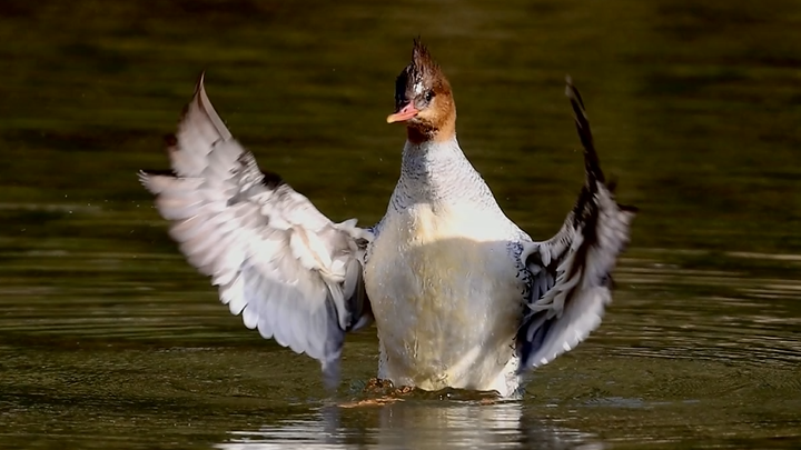 湖北十堰:中华秋沙鸭现身丹江口库区湿地郧西段