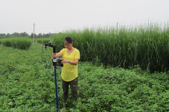 2014年,郑海金在南昌市进贤县的试验区开展作物光谱测量。(受访者供图)