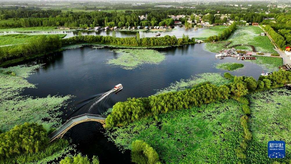 这是山东省济宁市微山县微山湖二级坝湿地公园景色(2024年8月13日摄)。新华社记者 郭绪雷 摄