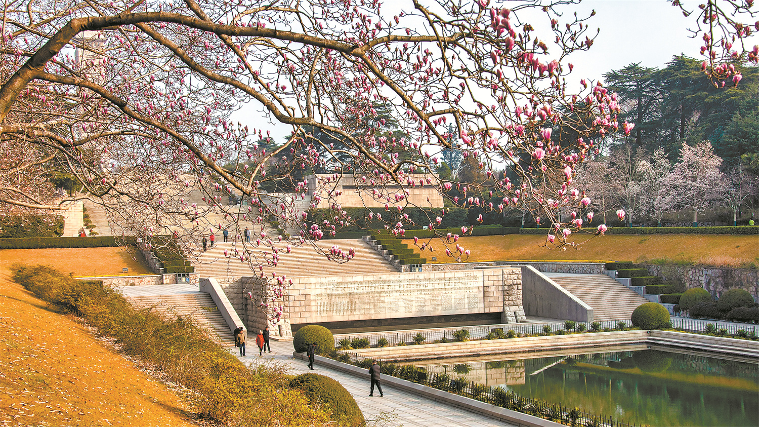 雨花台风景区的玉兰树特别高大,花朵的色彩层次十分丰富,有纯白、乳白、粉红、白中带红等各种颜色,成千上万各色花朵缀满枝头。在烈士纪念碑下方,倒影池两侧种植的56棵我国特有的珍贵植物宝华玉兰,也已悄然盛放。(任康)