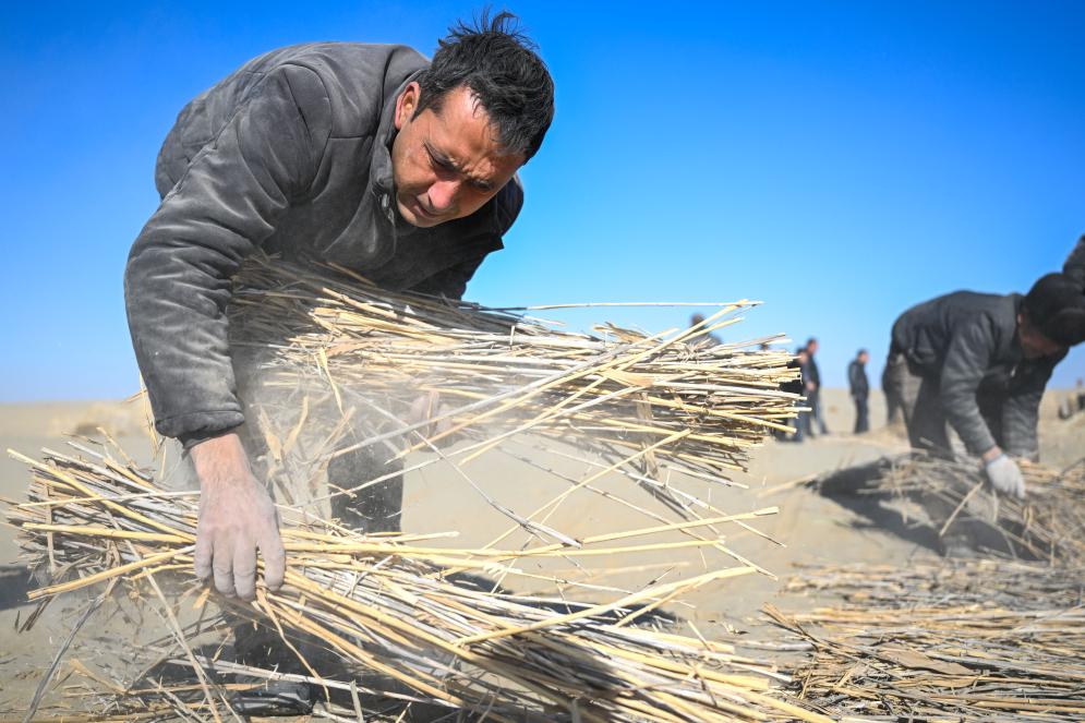 “一捆芦苇卖5元,两三个月下来能挣1万多元。”墨玉县扎瓦镇阿亚格阔坎村村民阿卜杜许库尔·麦提巴柯一边捆扎芦苇一边笑着说,治沙不仅守护了家园,也带来了实实在在的收入。