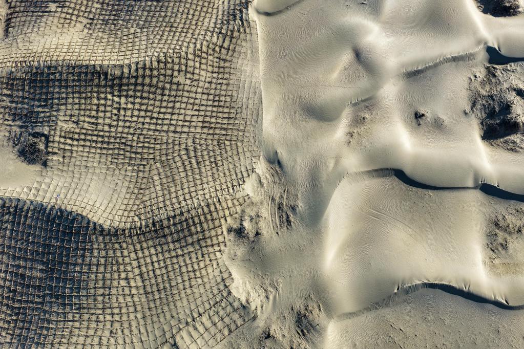 这是在新疆和田地区墨玉县喀瓦克乡周边沙漠拍摄的草方格(1月11日摄,无人机照片)。新华社记者 丁磊 摄