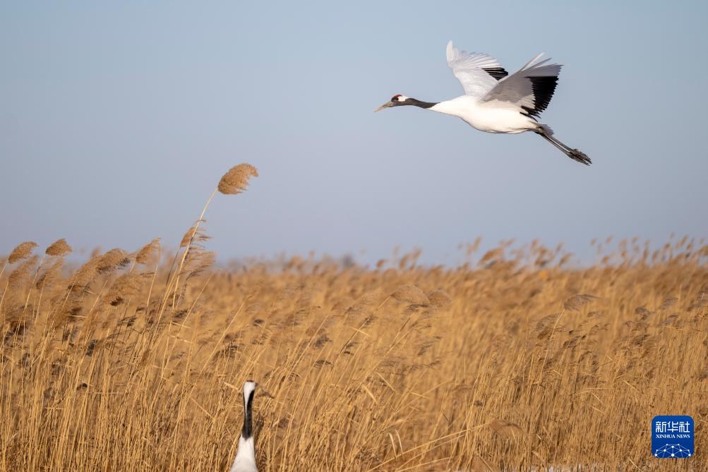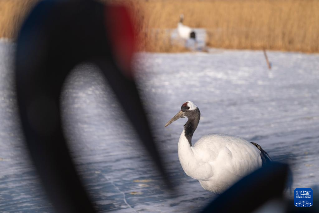 冬日时节,黑龙江扎龙国家级自然保护区内白雪皑皑,丹顶鹤在寒风中觅食,上演一幅鹤舞冬日的纯净画面。