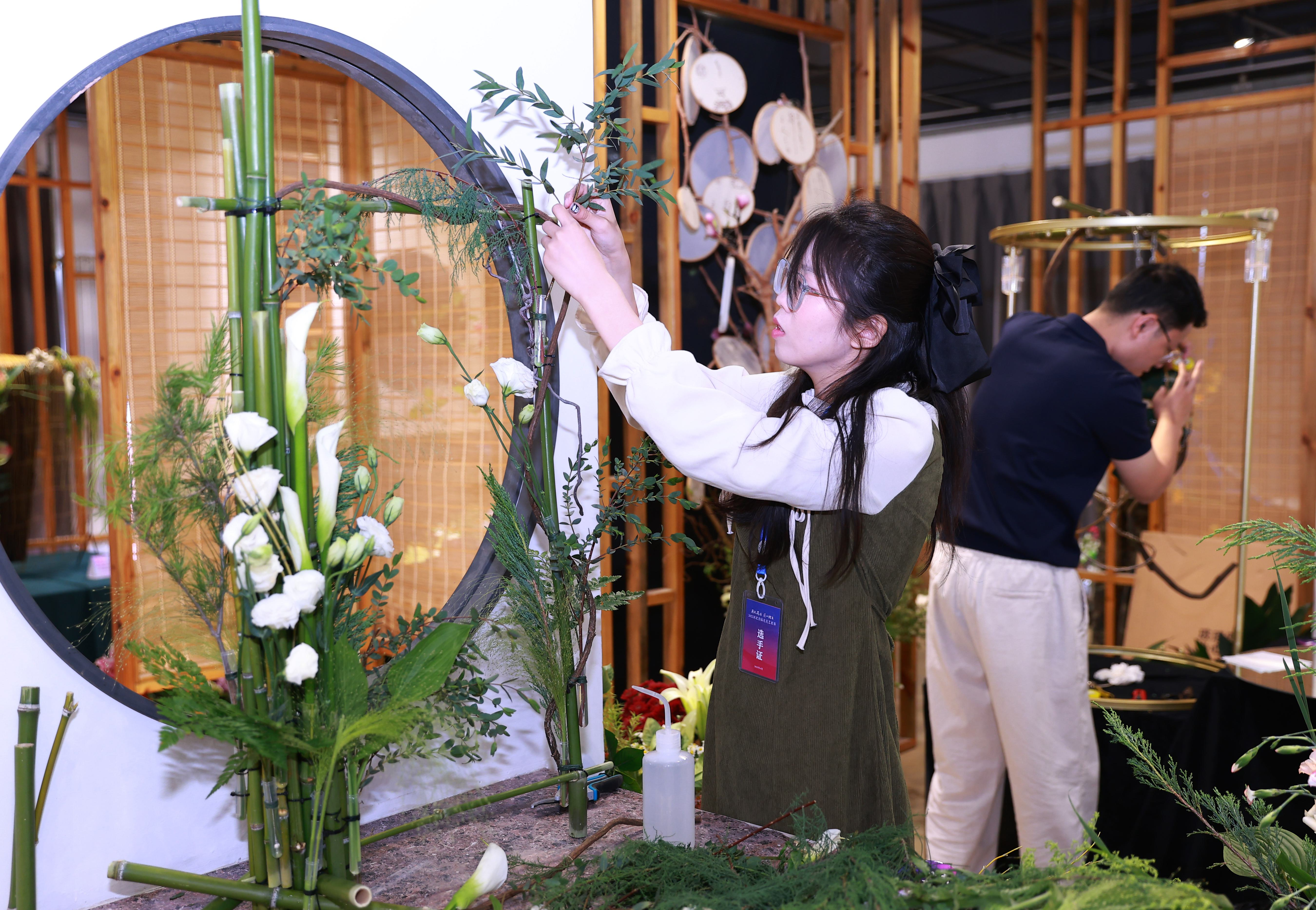 2025年“燕赵花语・匠心独运”插花花艺展赛,选手制作插花作品。
