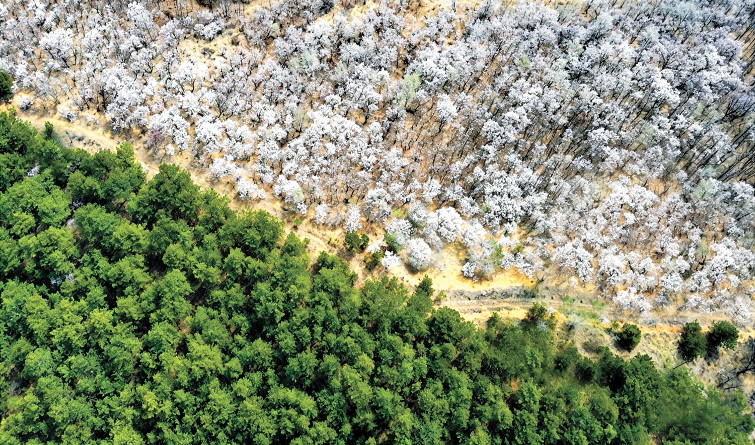 初春时节,穿行在河北省承德市的山山岭岭,目之所及的山野都被杏花笼罩,形成花的海洋。