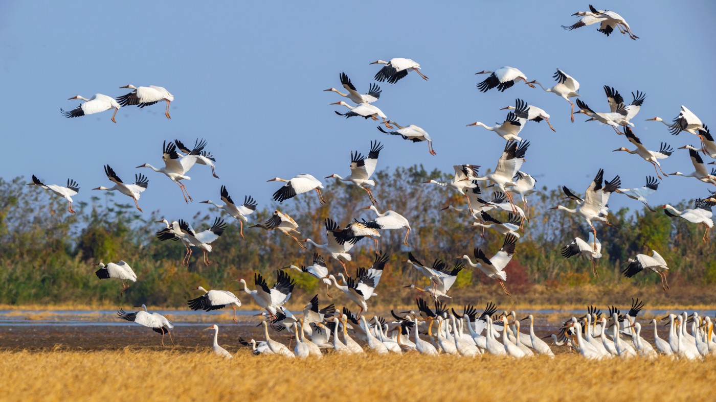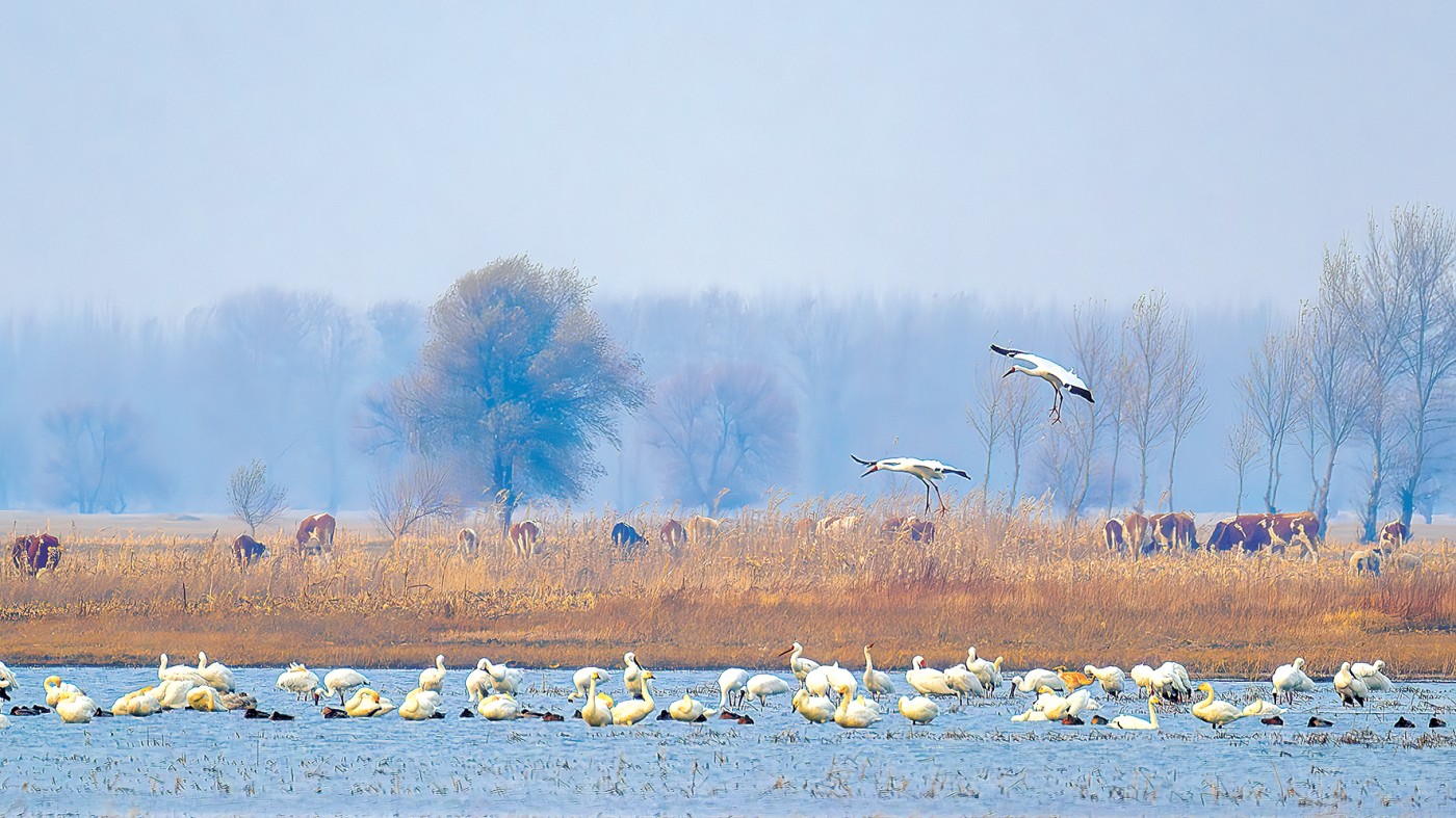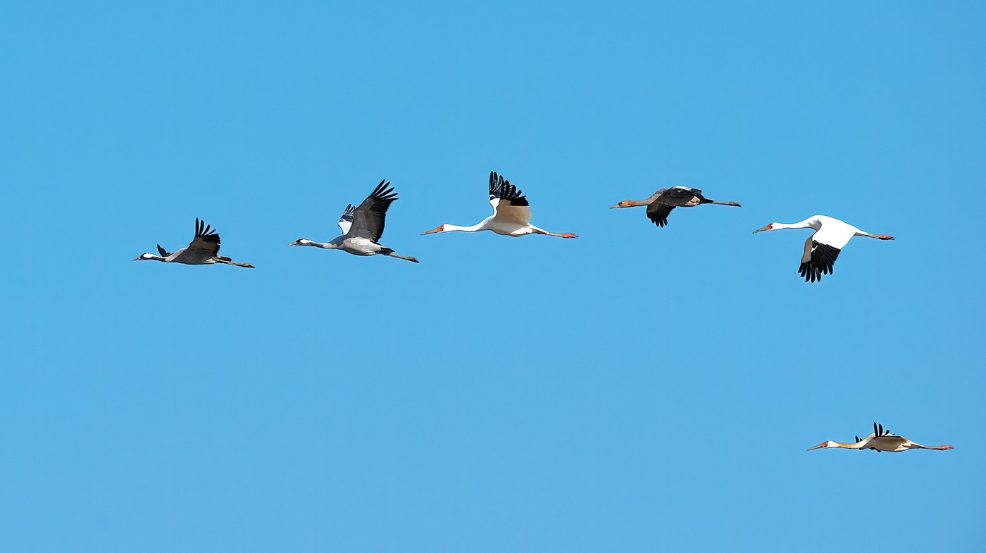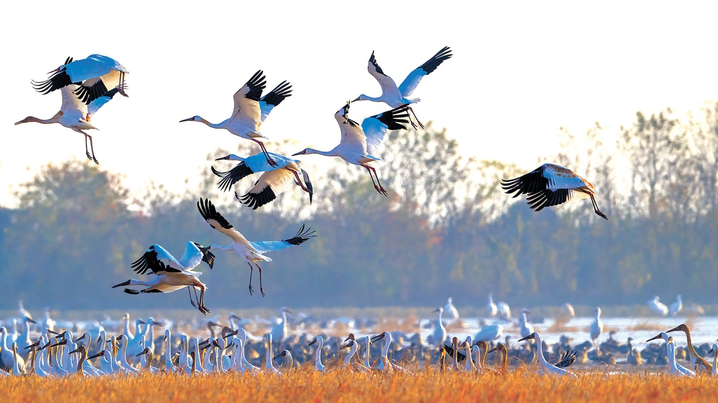 迁徙是一场漫长的奔赴,追寻是一段无悔的旅程。白鹤们周而复始地在季节里迁徙往返,用翅膀书写着生命的灿烂。而我,愿做一名忠实的记录者,带着相机与执着的心,永远追随那抹圣洁的白,在天地间感受自然的馈赠与生命的坚韧,将这份美好与感动传递下去。(杨玉萍)