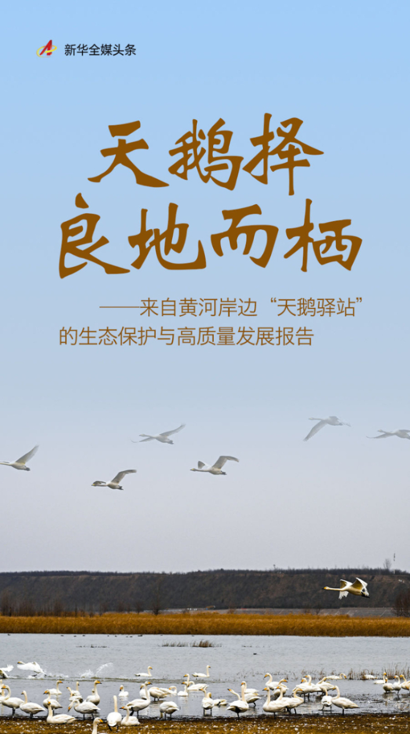 眼下,正值黄河湿地天鹅数量的峰值期。万顷湖天碧,一池雪花白,勾勒出人与自然和谐共生的美好画卷,也见证着黄河两岸生态保护和高质量发展的显著成效。
