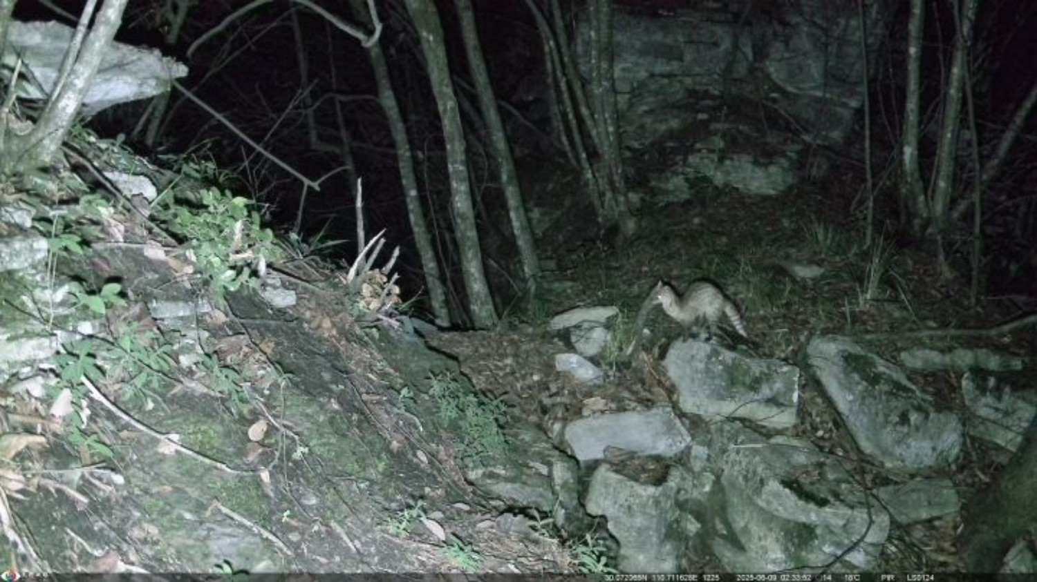 近日,湖北五峰后河国家级自然保护区茅坪管理站工作人员在整理红外相机监测影像资料时,发现国家一级保护野生动物小灵猫的身影。这是保护区自2006年布设红外相机以来,首次记录到该物种的活动影像。