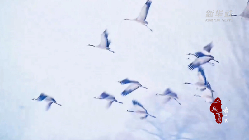雪白的冰面上,它们或静静伫立,或低头觅食,偶尔振翅而起,在空中盘旋片刻后再次落下,修长的身姿与冬景相互映衬,构成了一幅灵动和谐的生态画卷。