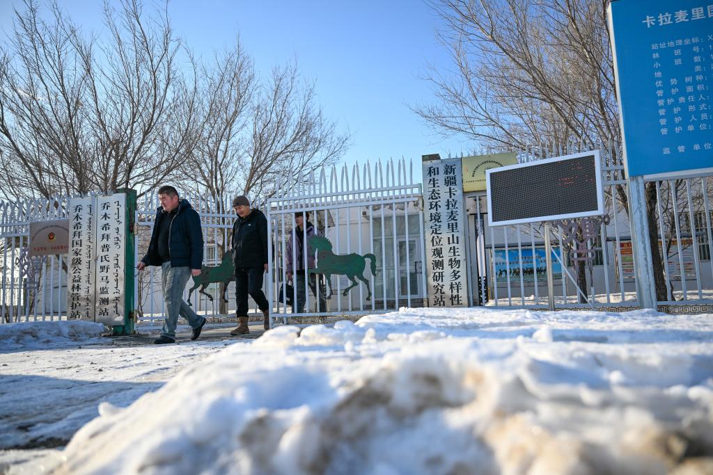 管护员走出乔木希拜普氏野马监测站,开始了一天的巡护(2月4日摄)。新华社记者 丁磊 摄