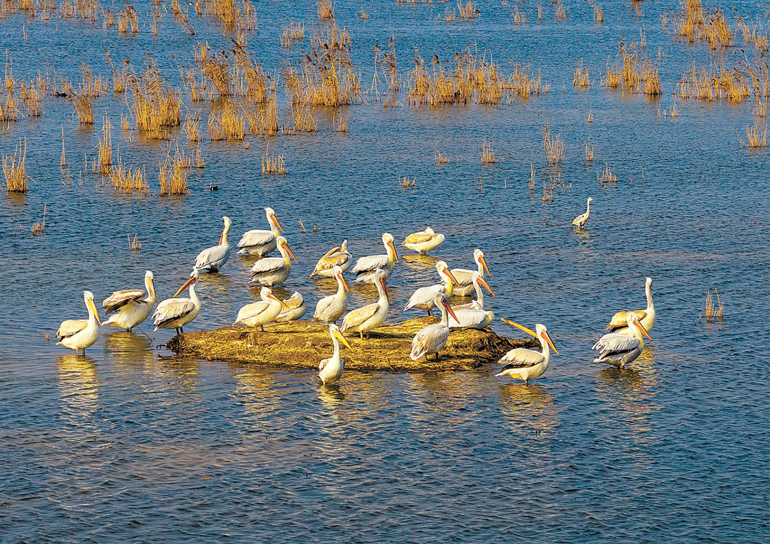 近日,江苏省盐城湿地珍禽国家级自然保护区监测人员在日常巡护中发现42只卷羽鹈鹕集群,其中单次最大集群达34只,刷新该区域卷羽鹈鹕种群观测历史纪录。