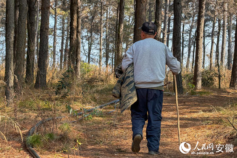 储永刚正在查看树木的生长情况。人民网记者 李希蒙摄