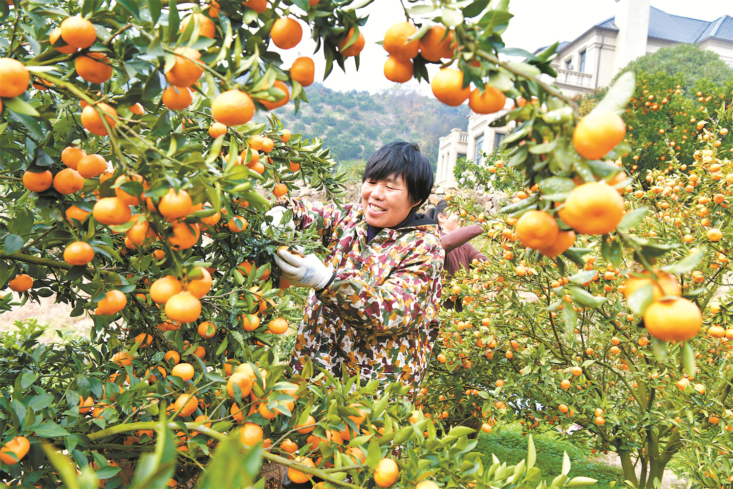 近日,浙江省建德市三都镇春江源村的橘农们在种植基地忙着采收、分拣、装运南丰蜜橘,准备供应市场。
