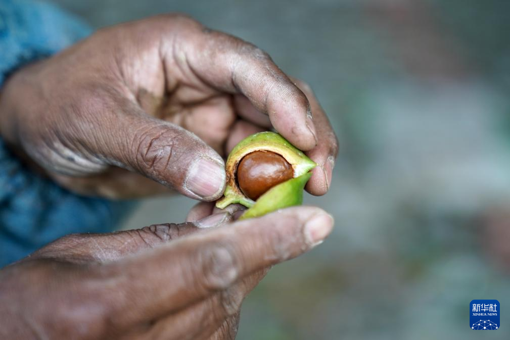陡坡无法机械打坑,就一锄一锄手工开挖;不懂种植技术,就翻遍农书资料自学嫁接……屡败屡试后,树苗终于结出串串绿果。毕家富也成为远近闻名的“土专家”,并带动全乡群众种植澳洲坚果15万亩。