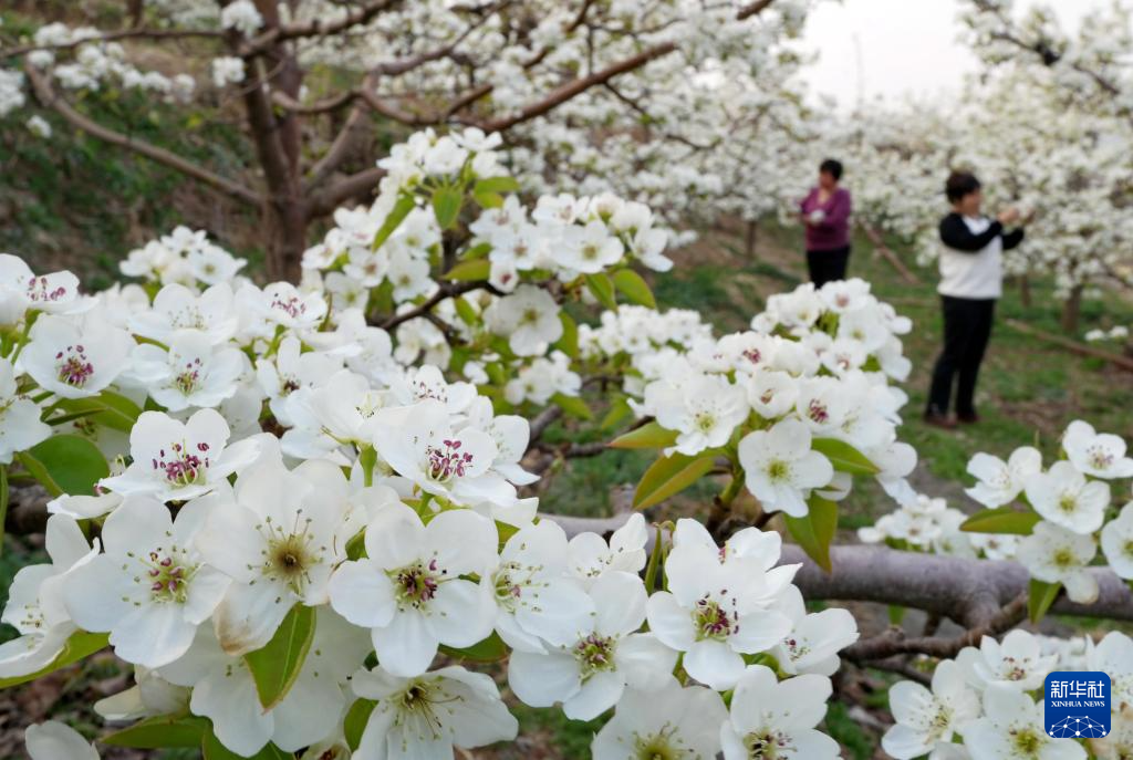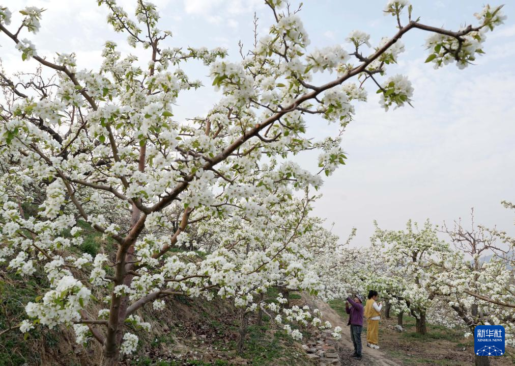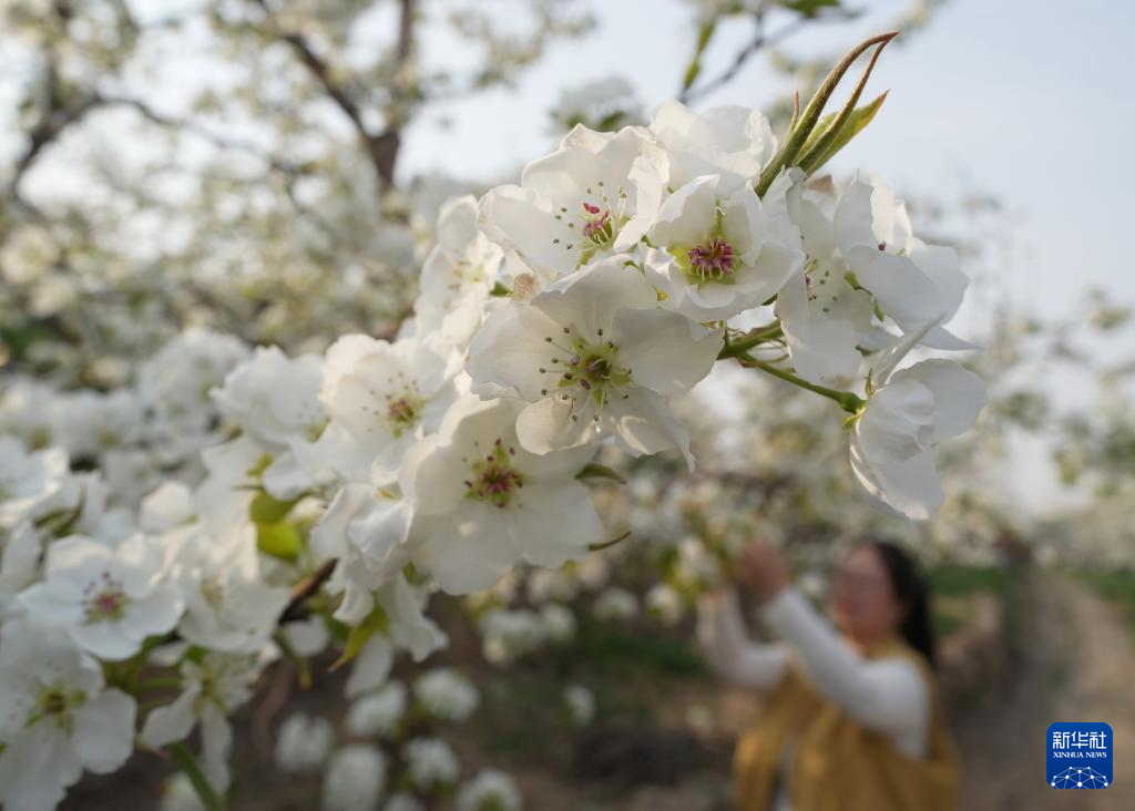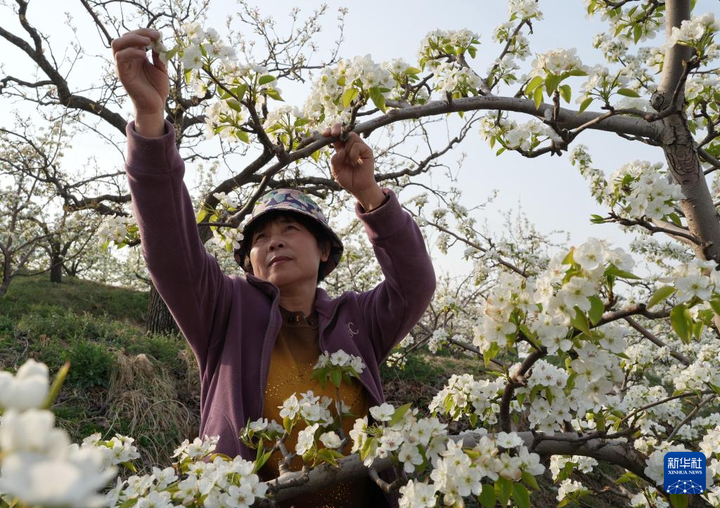 近日,河北省迁安市的梨树陆续开花,果农抢抓农时进行疏花授粉,构成一幅美丽的乡村画卷。