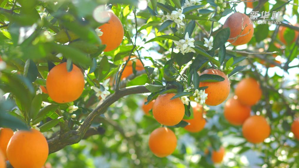 据了解,“花果同枝”是晚熟脐橙的独特景观,果实与当年的花朵同树共生,具有较高的观赏价值。