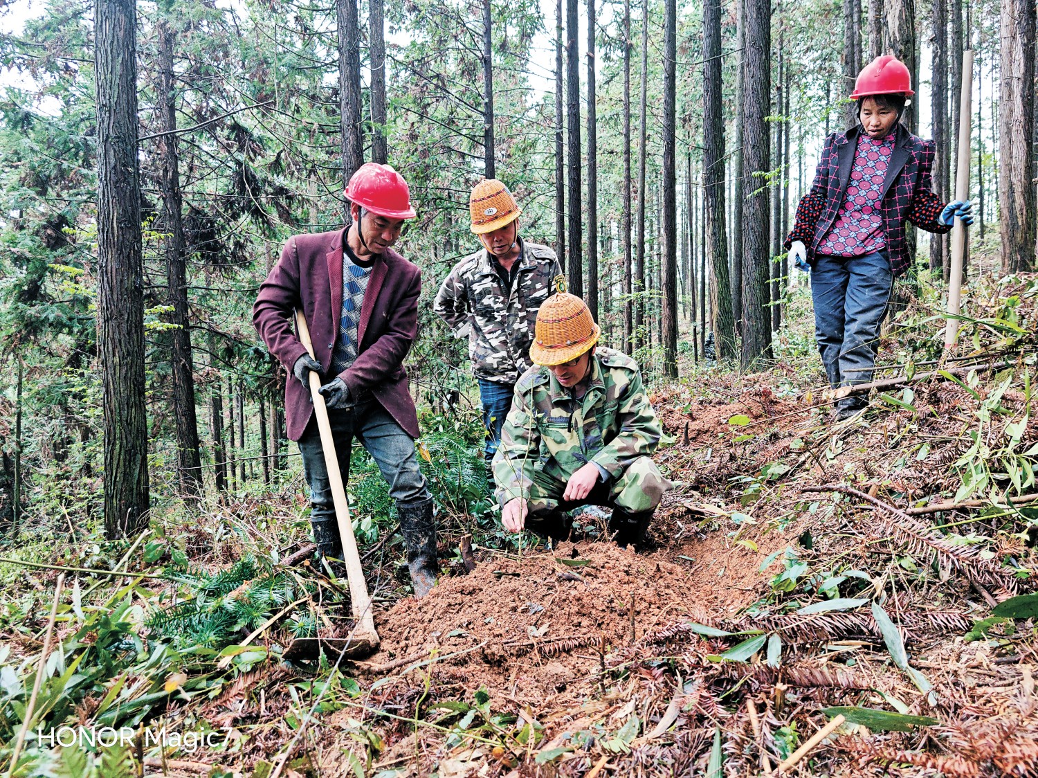 林场场部管护站岗梅种植基地工人正在种植岗梅 林亚琴摄