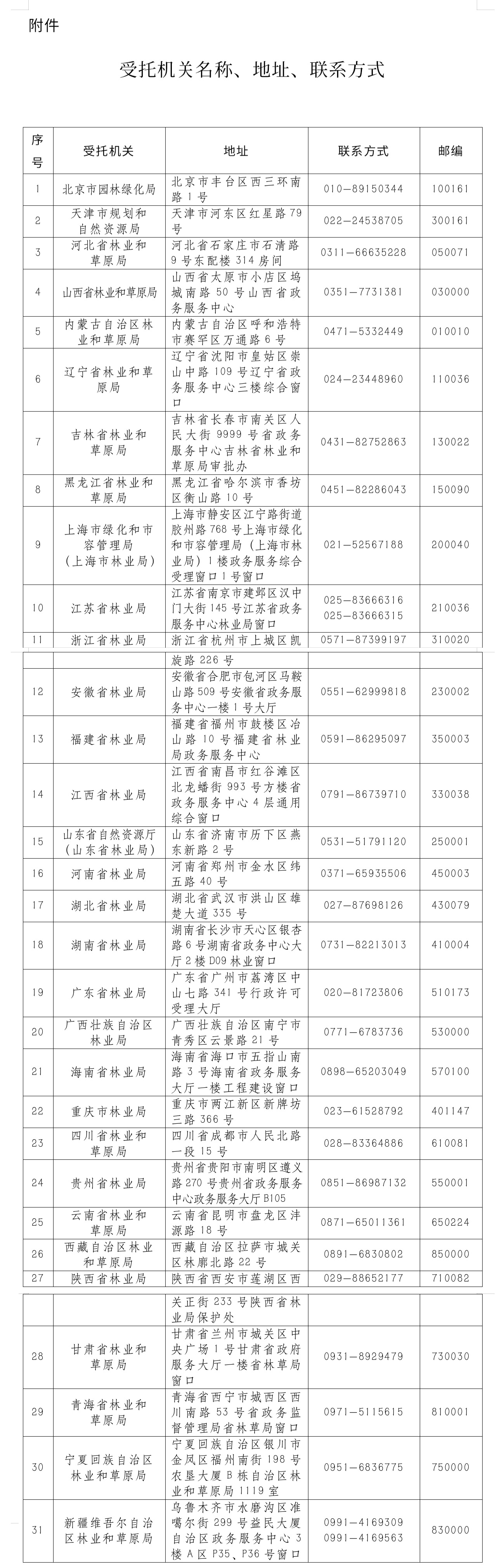 请符合本公告委托范围的申请人到各省、自治区、直辖市林业和草原主管部门申办该行政许可事项。受托机关名称、地址、联系方式见附件。