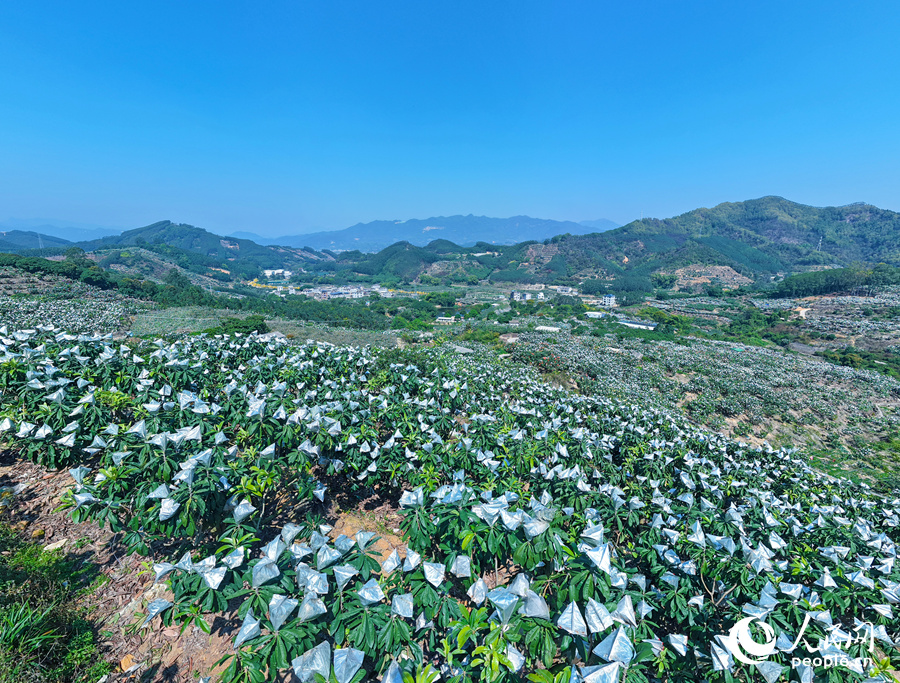 被银色果袋包裹着的枇杷挂满了枝头,让整片山银装素裹,宛若雪景。人民网记者 李昌乾摄
