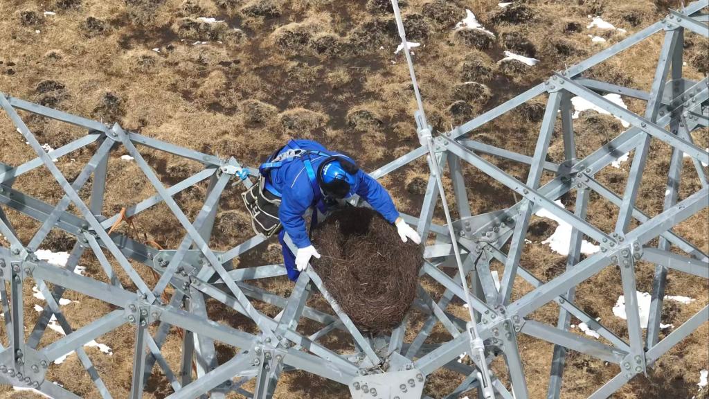 此前,同属高寒地带的若尔盖湿地,也曾面临同样困境。2021年起,国网阿坝供电公司联合鸟类专家、林草部门深入调研湿地沿线线路,分析鸟类迁徙、分布规律及保护级鸟类栖息区域,探索出“生命鸟巢”的生态治理方案:在铁塔安全区域安装人工鸟巢,引导鸟儿安心住下;在带电区域加装防护设备,让鸟儿远离危险。