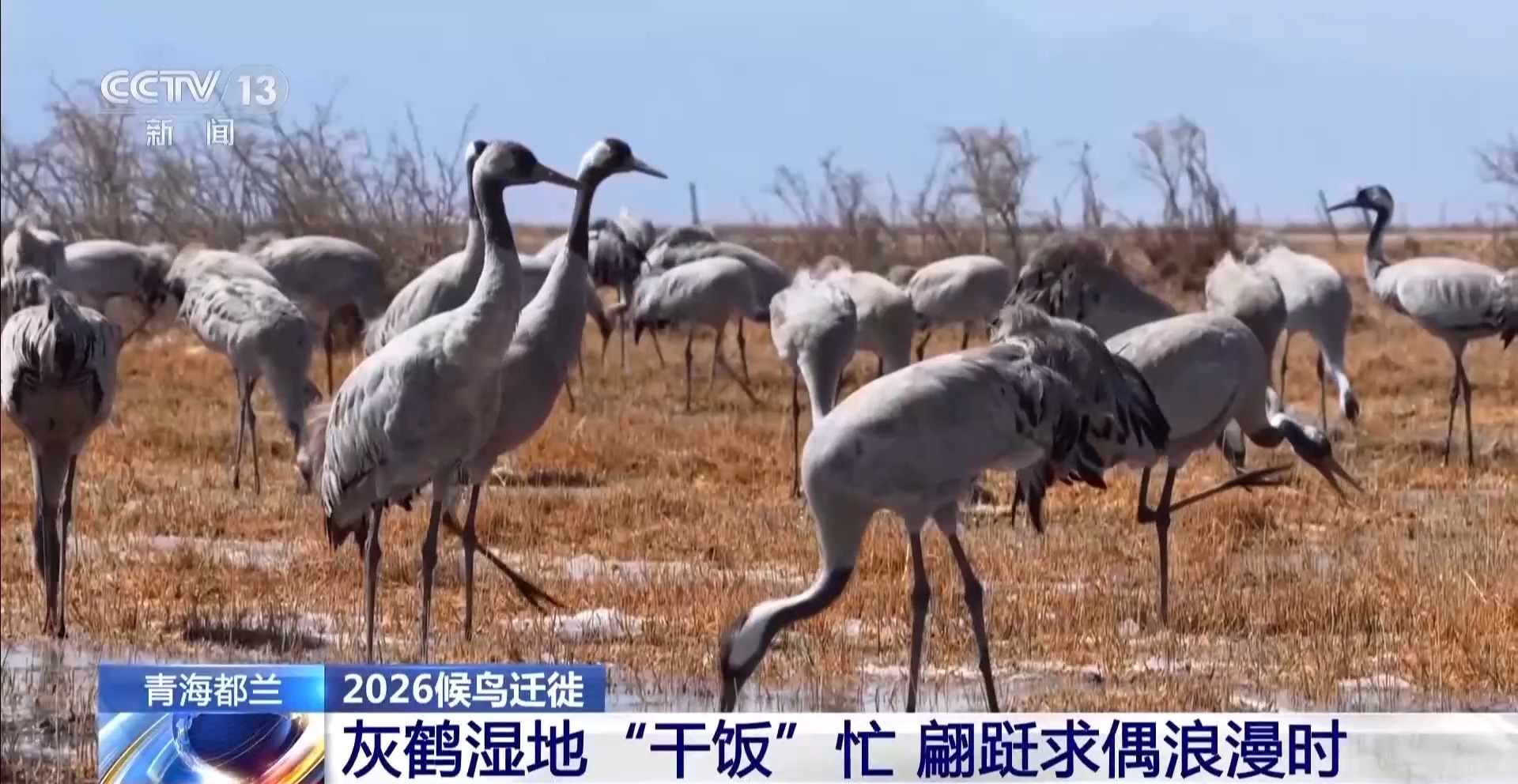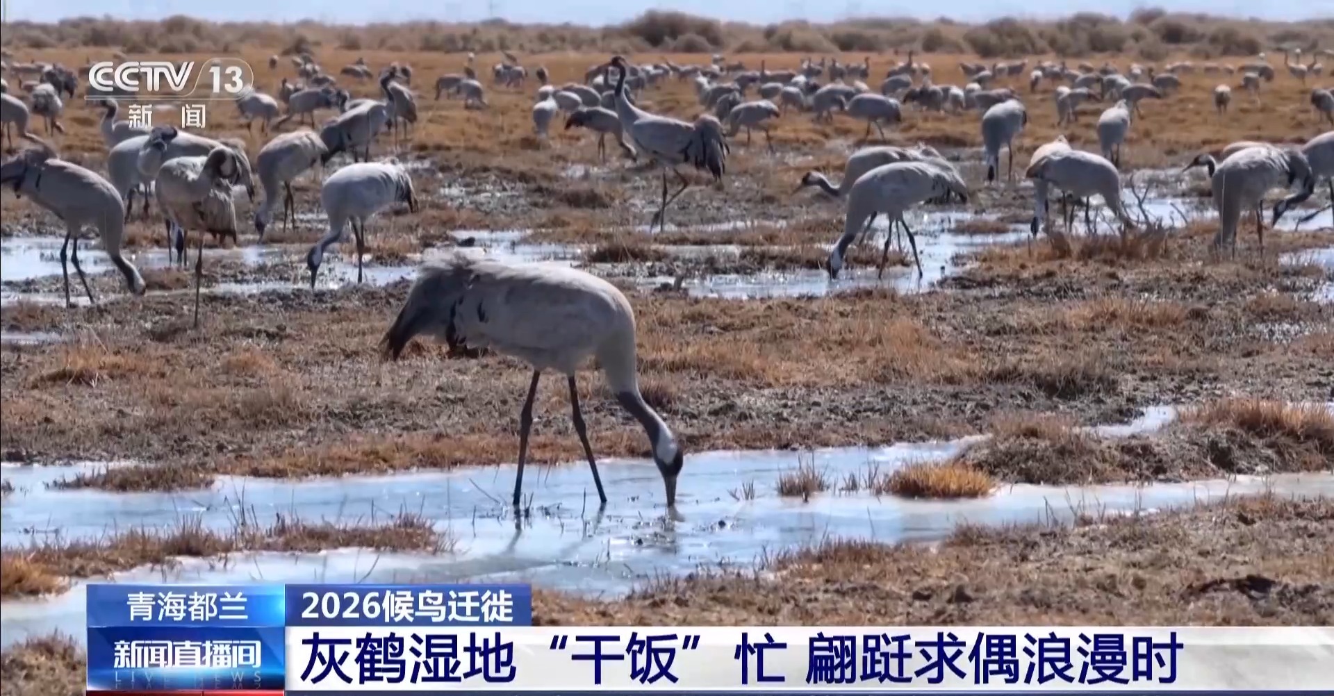 近日,青海省海西蒙古族藏族自治州都兰县迎来了上万只灰鹤。都兰县位于柴达木盆地腹地,是灰鹤南北迁飞路上重要的“能量补给站”。每年3月初,大批灰鹤会陆续飞到这里在湿地草滩间觅食休整,等到补充完体力后,会陆续向北迁徙前往夏季繁殖地。这群灰鹤为什么会在这里停歇?当地如何守护它们迁徙路的?跟随总台记者去现场看看。