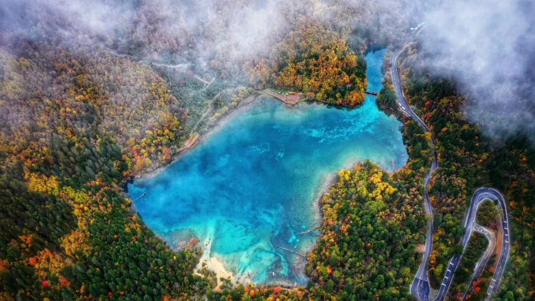 四川九寨沟五花海航拍(梁峰 摄)