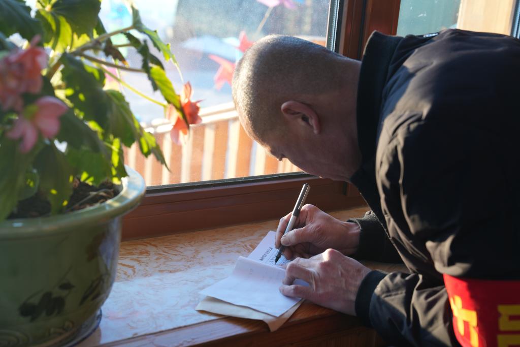回到管护中心,孙金河仔细填写巡护记录。新华社记者 恩浩 摄