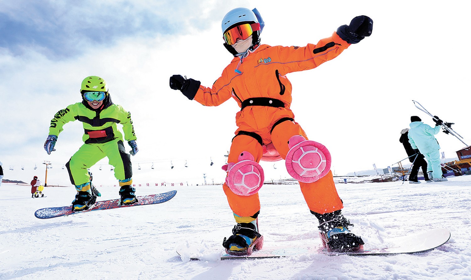 甘肃张掖祁连山滑雪场上,游客体验冰雪项目 王逢杰摄