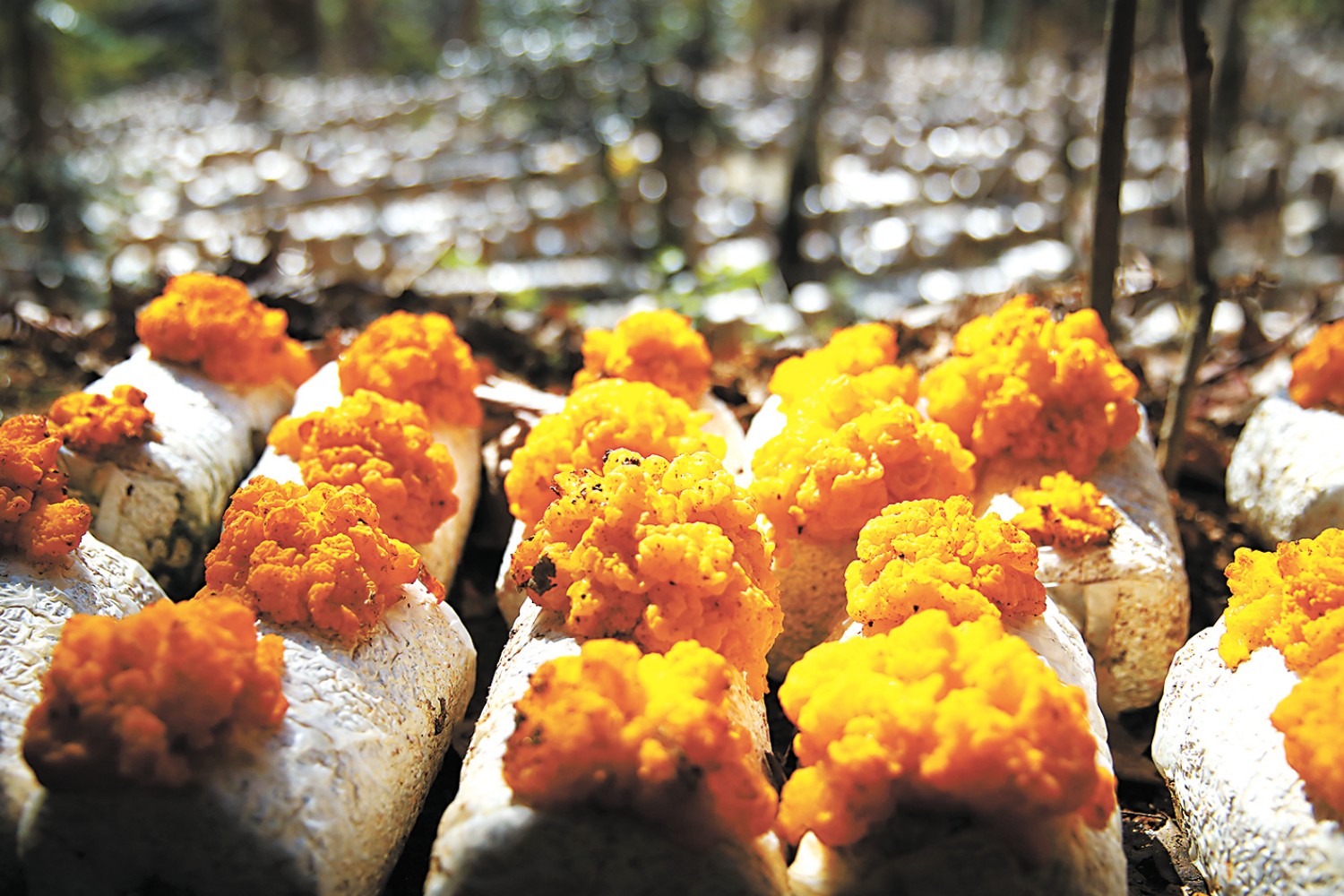 利用林下空间套种的食用菌金耳 中新社记者 刘占昆摄