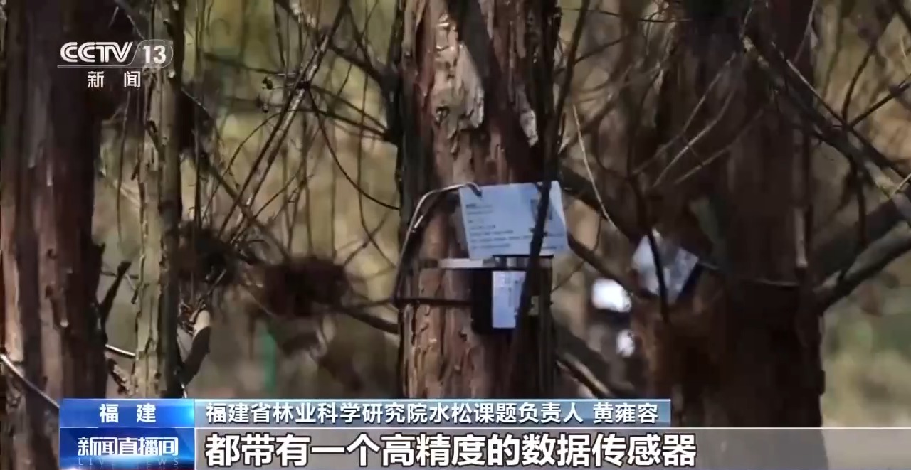 福建省林业科学研究院水松课题负责人 黄雍容:这个是树木径向生长监测仪,每个仪器都带有一个高精度的数据传感器,能够实时传输水松径向生长的昼夜季节性等很细微的变化过程,大大减轻了我们研究工作过程中的野外工作量,为我们研究水松径向生长规律提供了一个非常好的基础数据。