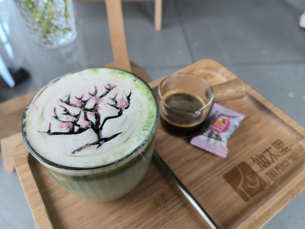 阳山镇一家“村咖”推出的春日限定咖啡。新华社发