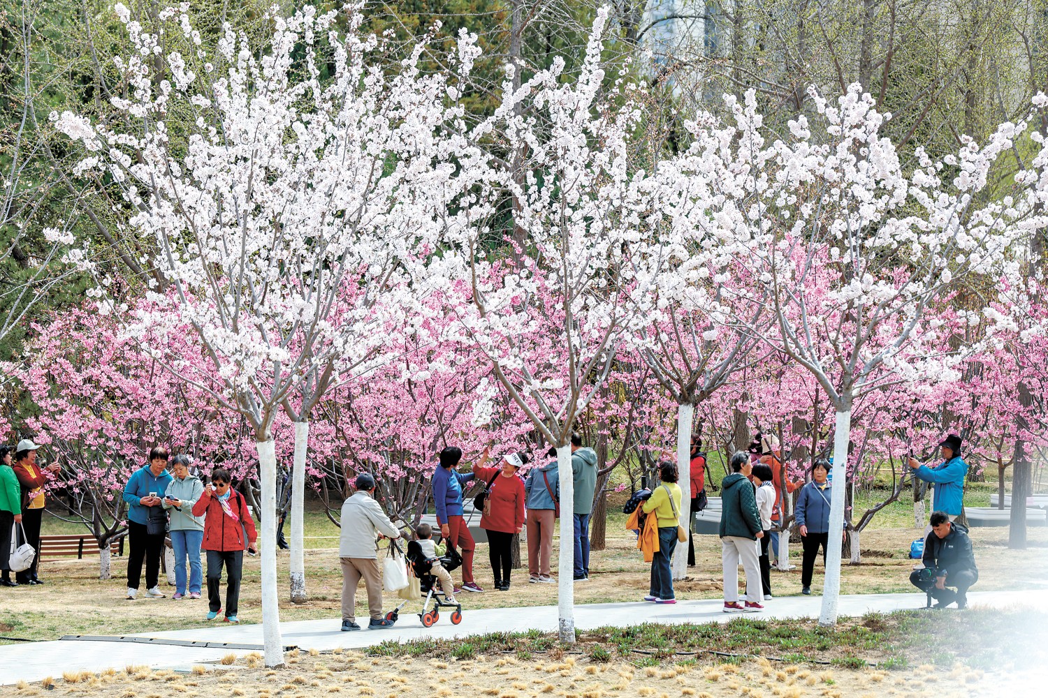 朝阳区北小河及沿岸、北小河公园、大望京公园、望和公园栽植樱花近6000株、海棠超2200株,粉白樱花与娇艳海棠相互映衬,形成“樱花水岸”与“海棠花溪”两大主题景观带,让市民尽享春日花海,感受生态景观的独特魅力。