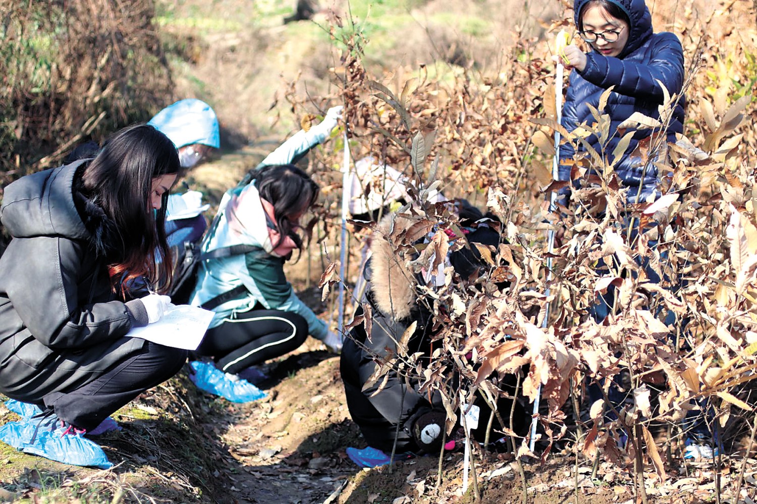郗佳园同学也是课题组的一员,她的工作是采集麻栎树根际土,用作微生物多样性分析。“提取根际土先要在麻栎根系周边挖坑,既不能挖错根系,也不能破坏植物生长,还要把细根上的土收集至无菌离心管。”这些工作,课题组持续开展了数年。