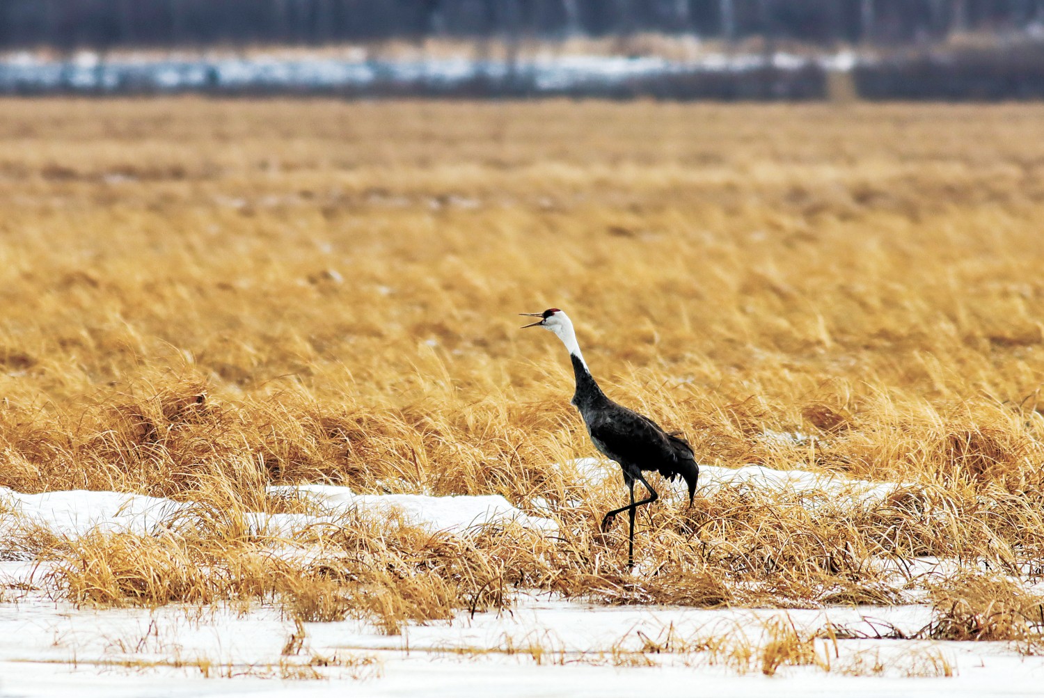 伊春森工新青白头鹤国家湿地公园保护区迎来2026年第一只回迁白头鹤。段福君摄