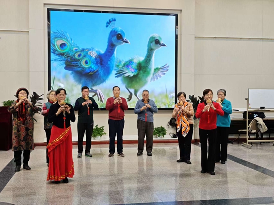 结业式上,各学习班的展演精彩纷呈。合唱班深情演绎混声合唱《今朝》,歌声悠扬激昂,传递出银发学子的蓬勃生机。舞蹈班以一支《最后的歌声》惊艳亮相,舞姿优美舒展,尽显从容优雅。模特队身着靓丽服饰登台走秀,步伐稳健、气质出众,展现了新时代老年人的自信风貌。葫芦丝班将演奏与舞蹈结合,一曲《快乐的小孔雀》旋律清脆婉转,伴以轻盈活泼的舞姿,演绎出晚年生活的盎然意趣。吉他班弹唱《友谊地久天长》,借熟悉的旋律表达了对彼此的真挚祝福,寄托了来日再聚的殷切期盼。空竹班献上了酷炫的花样表演,灵动的空竹在手中翻飞跳跃,展现了老同志的心闲手敏。书法班与绘画班联合举办结业笔会,老同志们现场挥毫泼墨、即兴创作,在笔墨交流中共赏雅趣。手工班则展示了精心制作的各类作品,构思巧妙、工艺精湛,处处流露着匠心与巧思。各班结业式充分展现了学员们丰硕的学习成果和昂扬的精神风采。