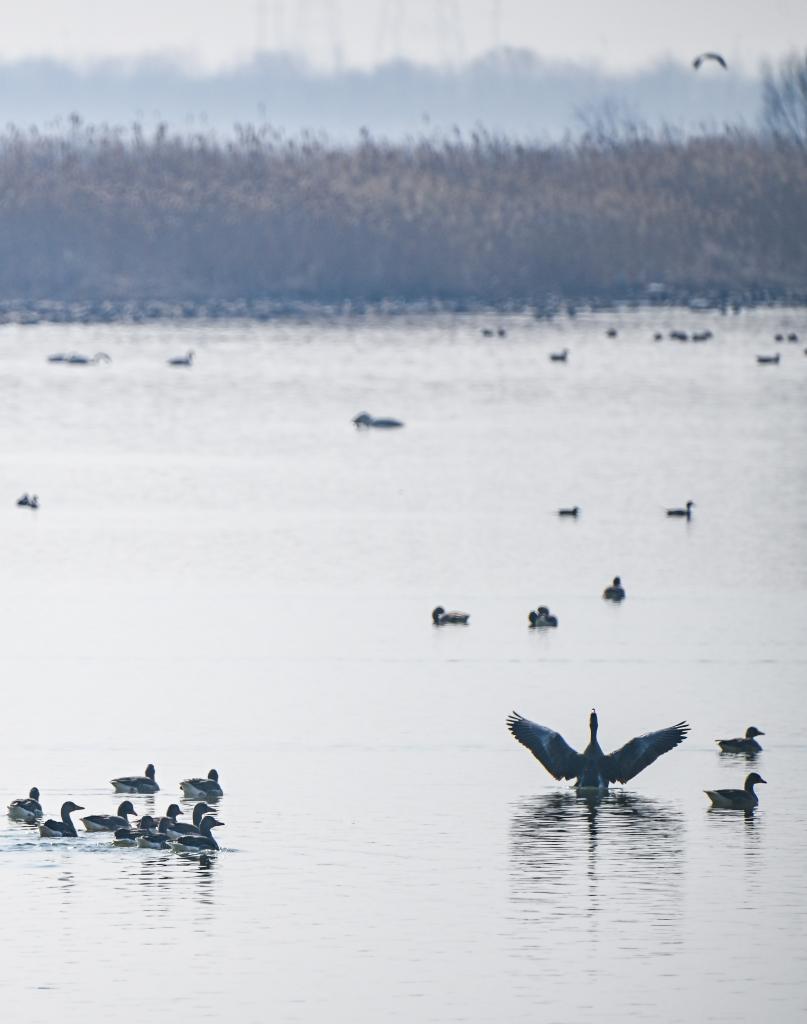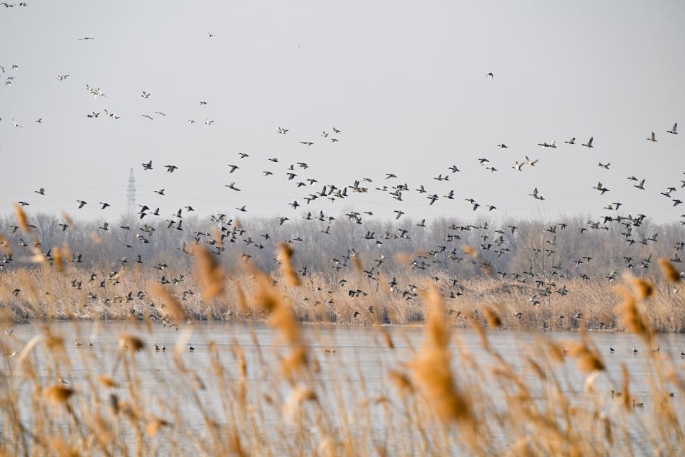 这是2025年2月26日在天津七里海湿地自然保护区拍摄的候鸟。新华社记者 孙凡越 摄