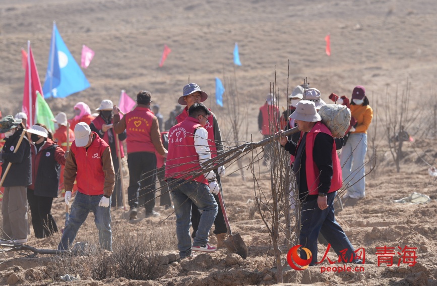 贵德县地处黄河上游重要生态屏障区,黄河流经县域76.8公里。此次植树优先选用长把梨、秋子梨等适宜当地气候的乡土树种及优良品种,共栽植苗木6720株,在边都滩基地营造特色地产杂果生态经济林8公顷。同时,结合前期林地调查,同步开展新造林地、采伐迹地补植补栽,进一步提升区域森林覆盖率与植被质量。