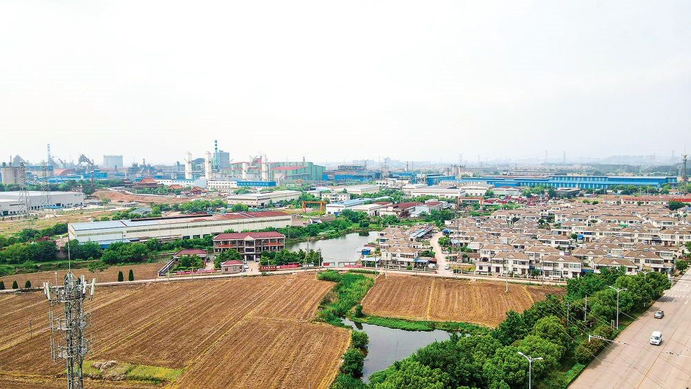 “2001年长江钢铁在此建成投产,不少村民在厂里就业,2005年荆山圩村和黄垾村合并时,我们两个村一合计,便唤新村名为‘长江村’。”长江村党总支书记张先军说。