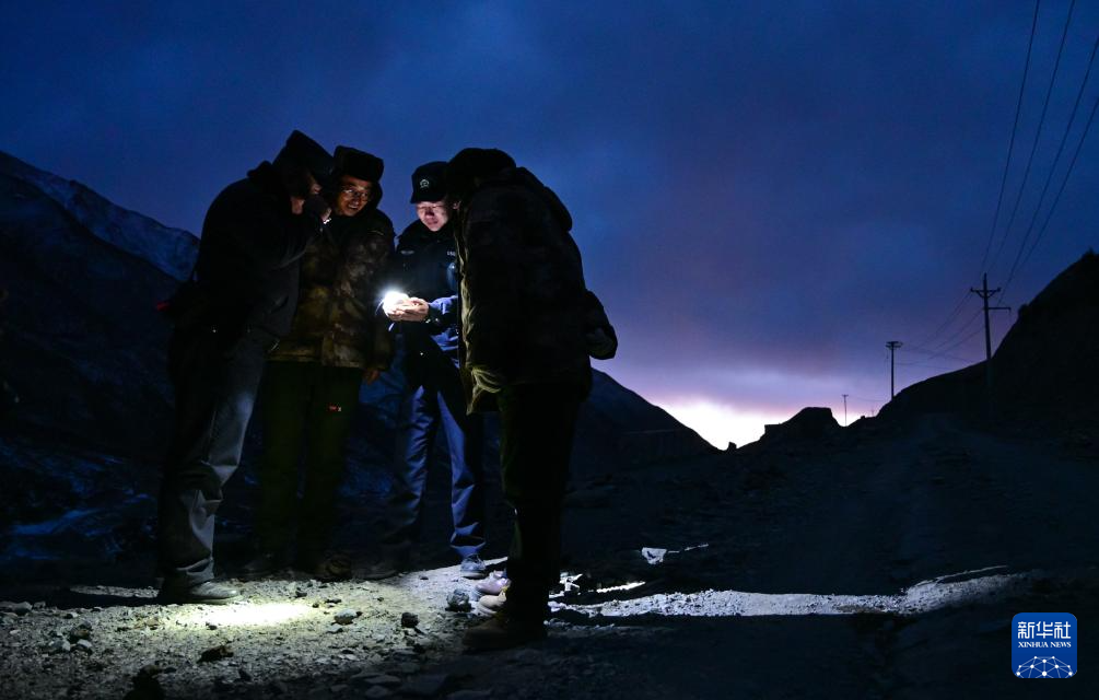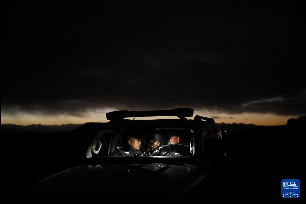 1月8日晚,在青海省海北藏族自治州门源回族自治县境内的老虎沟,民警在巡护途中休息。