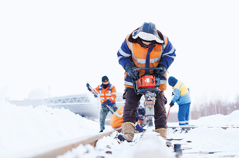 春运期间,交通部门积极采取保障措施,做好清雪除冰和旅客出行组织工作。图为2024年1月23日,中国铁路哈尔滨局集团有限公司佳木斯工务段前进镇线路车间抚远工区班组成员在抚远站附近进行冬季线路冻害检修作业。 新华社记者 王松/摄