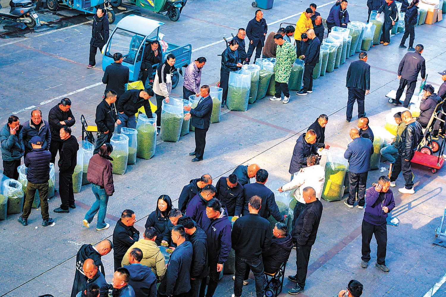 随着新茶陆续上市,众多茶商纷纷到市场“寻宝”。近日,在安徽省安庆市岳西县金翠兰茶叶大市场,茶农和茶商忙着进行“明前茶”交易。