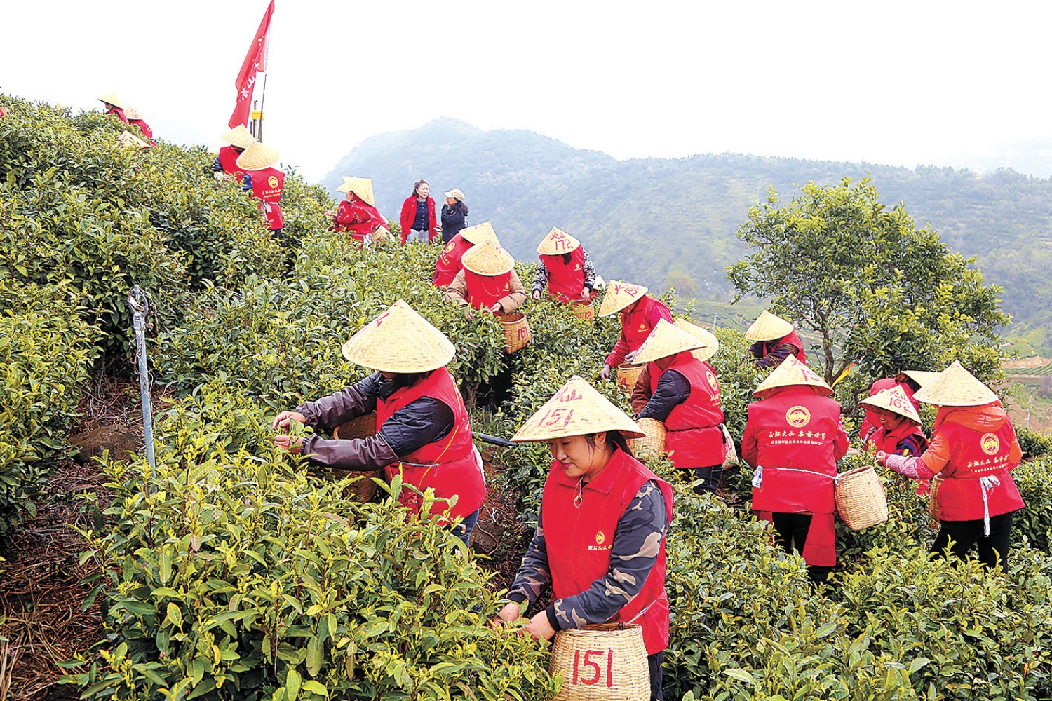 随着气温逐渐回暖,福建省南平市松溪县茶平乡的万亩茶园里,春茶吐露嫩绿新芽,迎来采摘黄金期。当地茶农们穿梭于茶垄间,抢抓农时采摘头茬春茶,为茶乡新一年的增收致富拉开了序幕。 (王德锋 李梦凌)