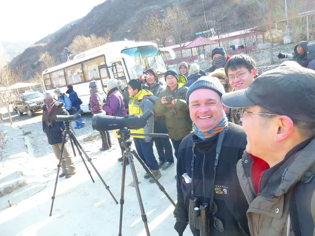 观鸟群体中的洋鸟人(摄影:郭耕)