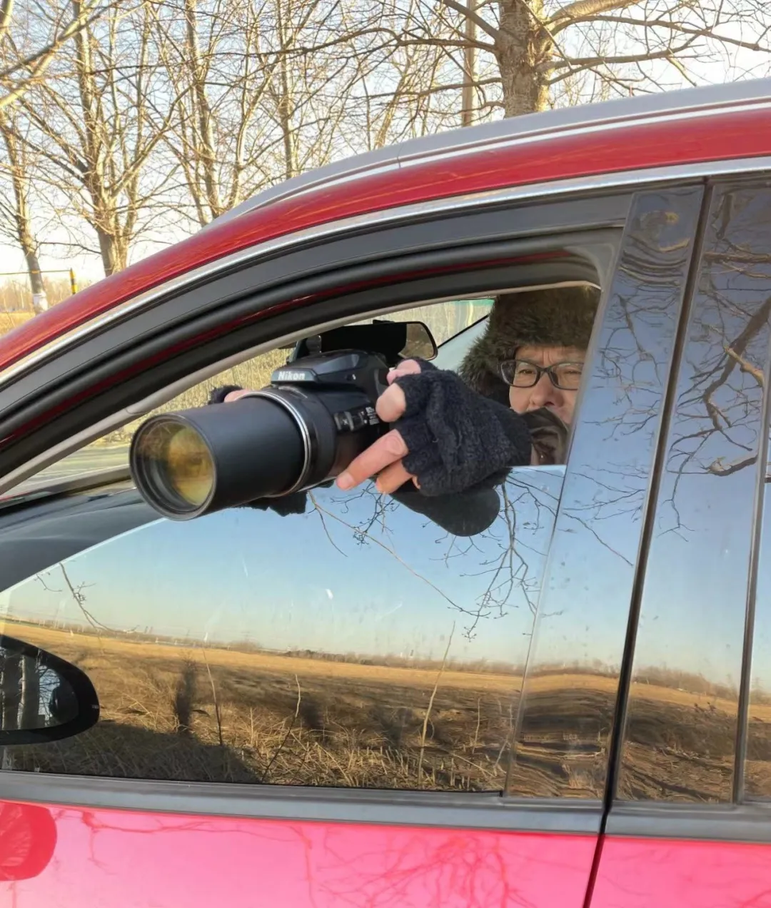 笔者的车拍动作,为把对鸟的影响降到最低(来源:郭耕)