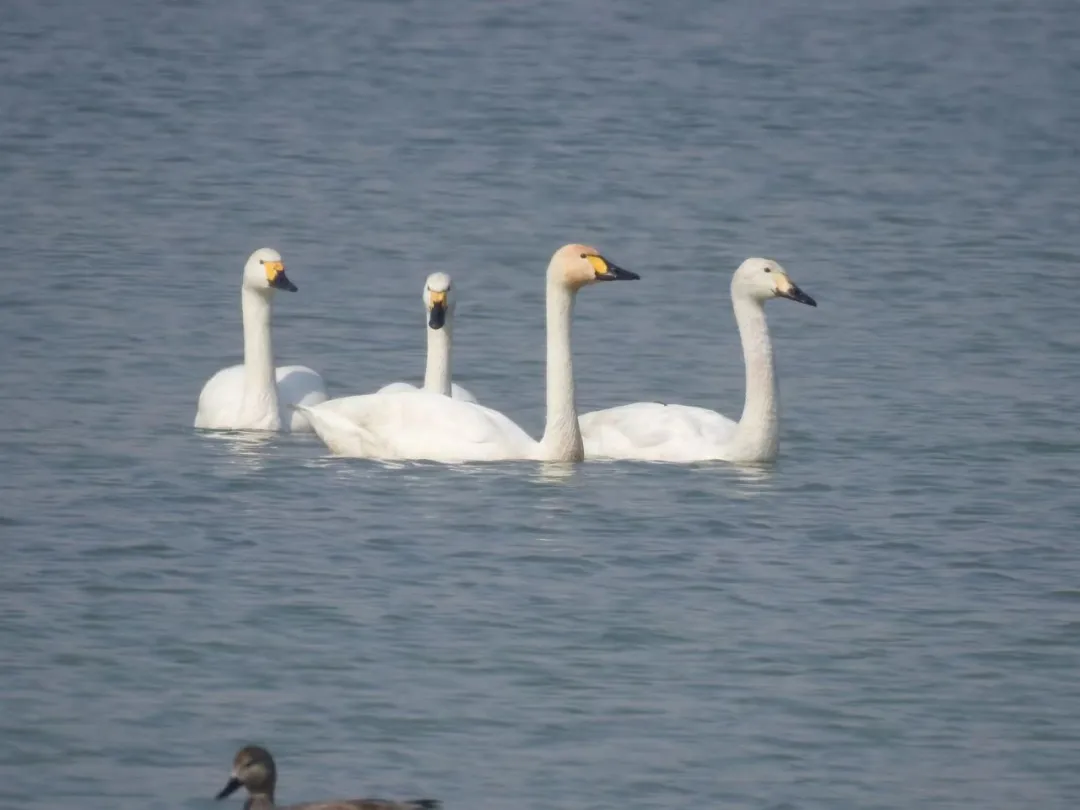 笔者在南海子拍摄的四只小天鹅(摄影:郭耕)