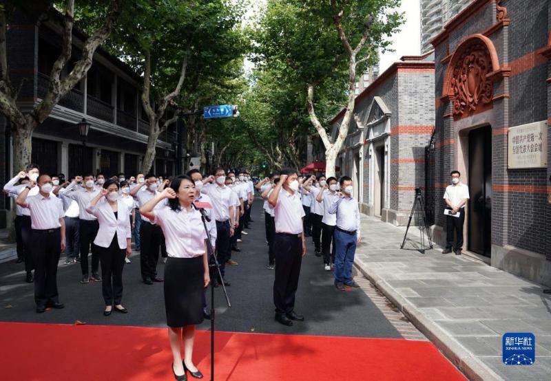 上海市新党员代表入党宣誓活动在中共一大会址前举行(2022年7月1日摄)。新华社记者 刘颖 摄
