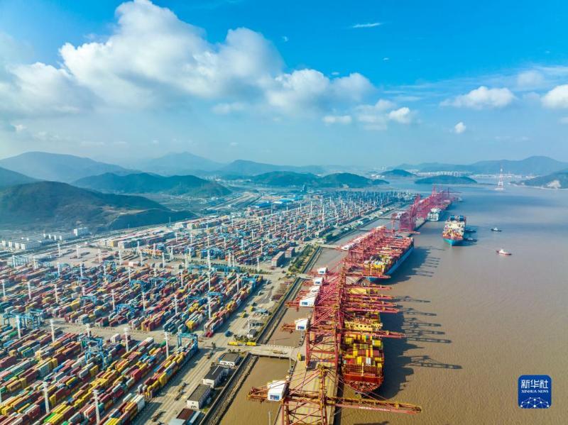 这是浙江宁波舟山港穿山港区(2021年12月24日摄,无人机照片)。新华社发(汤健凯 摄)