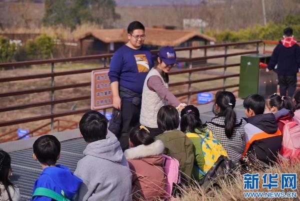 孩子们在观鸟平台开展研学活动。新华网发 舒雯 摄